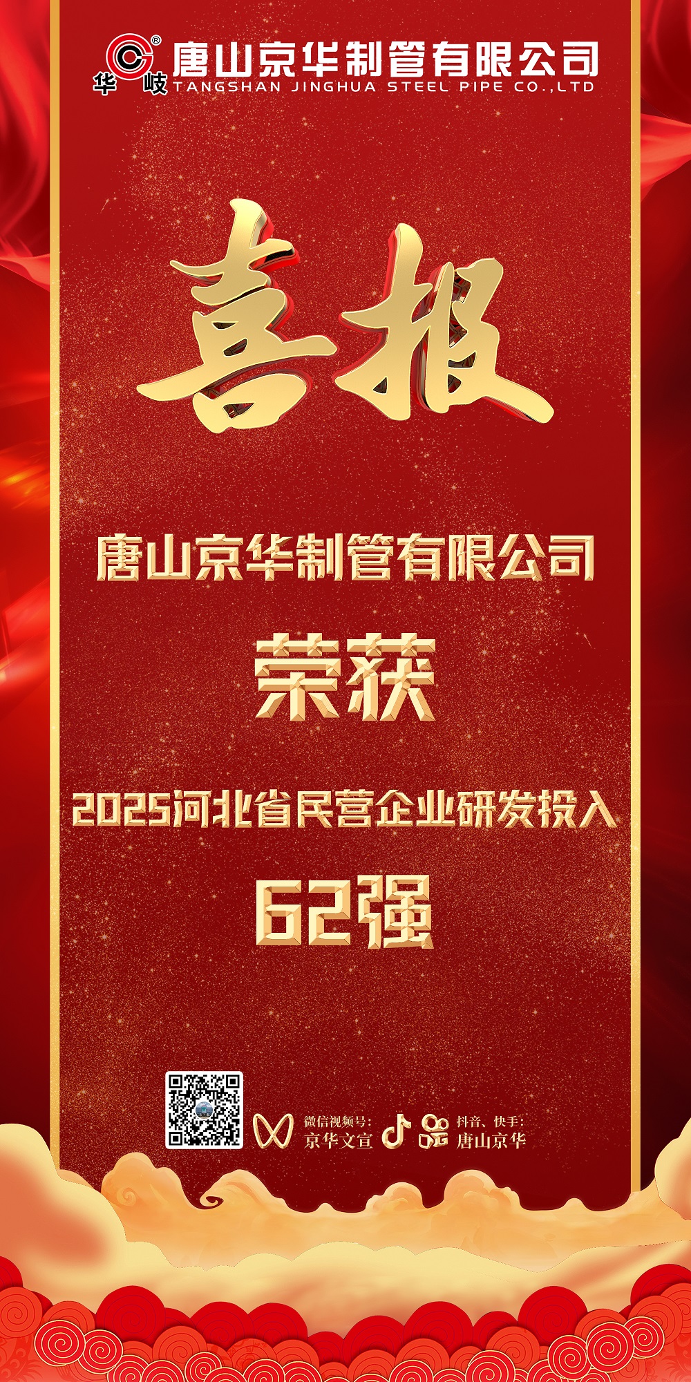 近日,河北省工商联发布了2025河北省民营企业百强系列榜单。唐山京华荣膺2025河北省制造业民营企业100强第86位、河北省民营企业研发投入100强第62位。